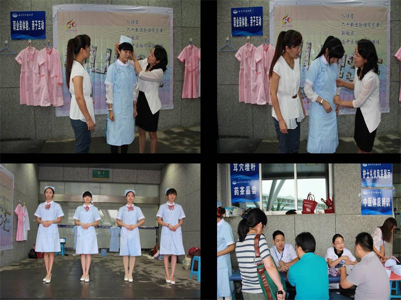 再次,为帮助家长更加直观的了解护理专业,学院在家长等候区精心设计了一系列护理职业礼仪展示与中医护理体验活动:在职业礼仪展示中,学院礼仪社的同学们向家长们演示了护理人员站姿、走姿、持病历夹、端治疗盘、穿脱手术衣等规范动作;在中医护理体验活动中,家长们通过品尝养生药茶、尝试中医耳穴埋籽及了解中医九种体质辨识等,更加全面、深入的了解了博大精深的中医养生文化,增加了对孩子所学专业的认可与支持;在新生与家长合影留念区,学院提供了护士服供新生与家长合影留念。