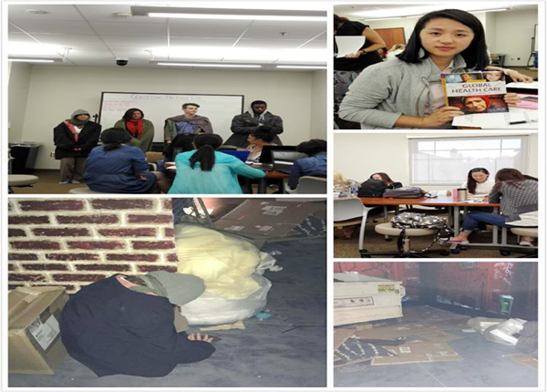 3. 流浪者Simulaiton教学体验:护理工作不仅着眼于医院内的患者,更应关注社区、国家乃至全球范围的健康问题。在Global Health的课堂中,一场别开生面的有关流浪者的Simulation正在开展。