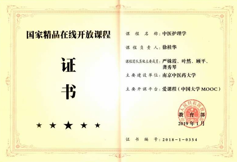 近日,教育部公布了2018年国家级精品在线开放课程认定结果,亿博《中医护理学》课程(负责人:徐桂华;主要成员:严姝霞、叶然、顾平、龚秀琴等)获国家精品在线开放课程。这是继《中医内科护理学》获国家精品资源共享课程后的又一门国家级精品在线开放课程。