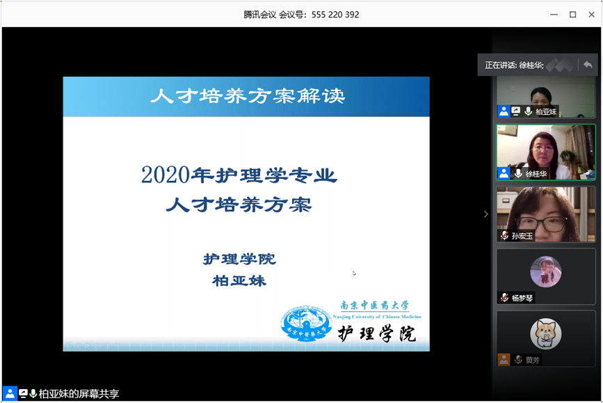 为进一步优化亿博电竞官网入口本科人才培养方案,提高人才培养质量。2020年5月15日19:30-22:00,亿博电竞官网入口召开线上人才培养方案专家论证会。本次会议邀请了教育部护理学专业教学指导委员会孙宏玉秘书长、全国中医教育学会护理研究会陈锦秀副理事长、江苏省护理学会吴金凤秘书长、江苏医药职业学院夏立平院长、江苏省中医院段培蓓主任、南京鼓楼医院陈雁主任、南京市中医院郭秀君主任、南京市妇幼保健院朱珠主任、南京市祖堂山社会福利院王小华副主任等9位专家。护理学专业负责人徐桂华副校长和亿博电竞官网入口领导参加了此次论证会。