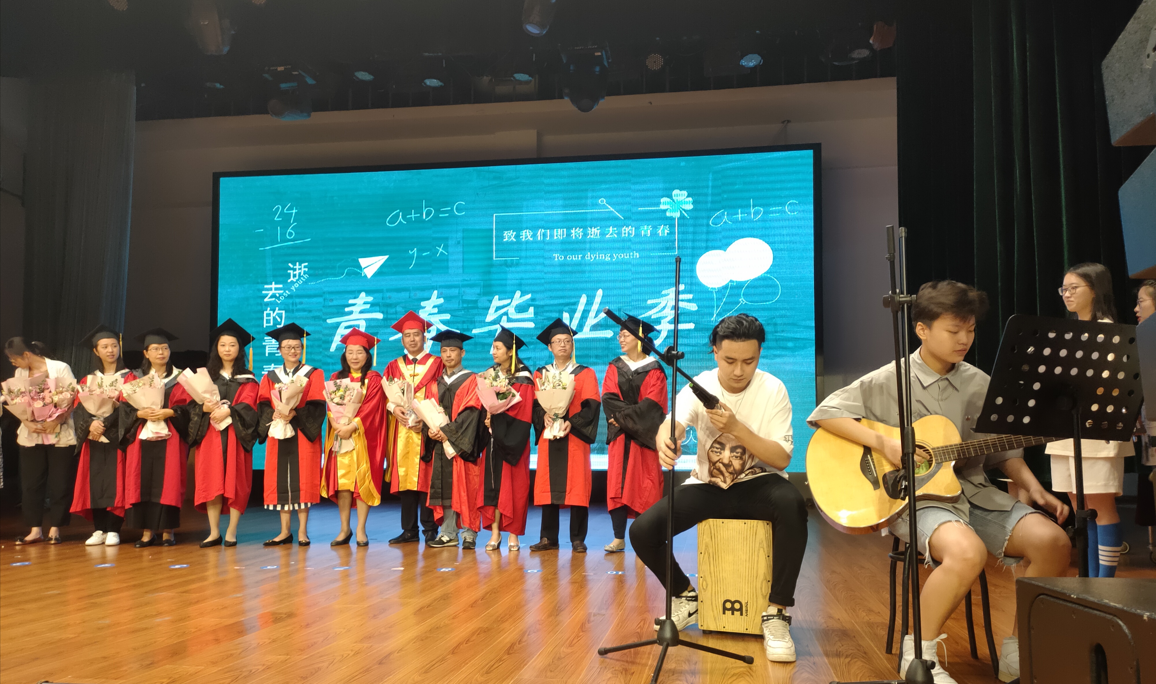 阵阵掌声和欢笑中,主席台老师和毕业生代表共切毕业蛋糕,全场师生合唱《光阴的故事》,典礼庄严而温馨,共同庆祝全体2020届毕业生学有所成,开启人生新征程。