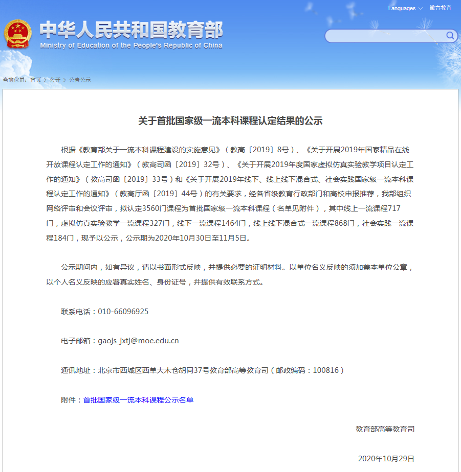 近日,教育部发布了《关于首批国家级一流本科课程认定结果的公示》。亿博徐桂华副校长课程团队的《中医临床护理学》(线上线下混合式一流课程)获首批国家级一流本科课程认定公示。
