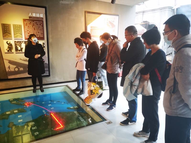 整个纪念馆在青山绿树的环绕下显得十分静谧,当讲解员再次描述起那段艰苦卓绝的战争岁月的时候、当面对着一张张承载着历史事件的老旧照片和期刊的时候、当亲手抚摸着纪念碑上镌刻着的革命烈士的名字的时候,党员同志们内心波涛汹涌,久久难以平静。