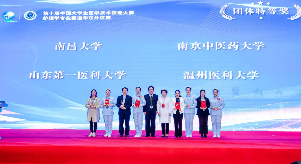 在本次比赛中,亿博电竞官网入口朱婧怡、李洵、彭文雯、曹祥4位选手沉着冷静、团结协作、发挥出色,展现了南中医护理学子的优秀风貌,一路过关斩将,成功拿下本届护理技能大赛华东分区赛“团体特等奖”,朱婧怡获“健康评估技术”、“四步触诊+胎心监护”两个单项奖,彭文雯获“造口护理”单项奖。