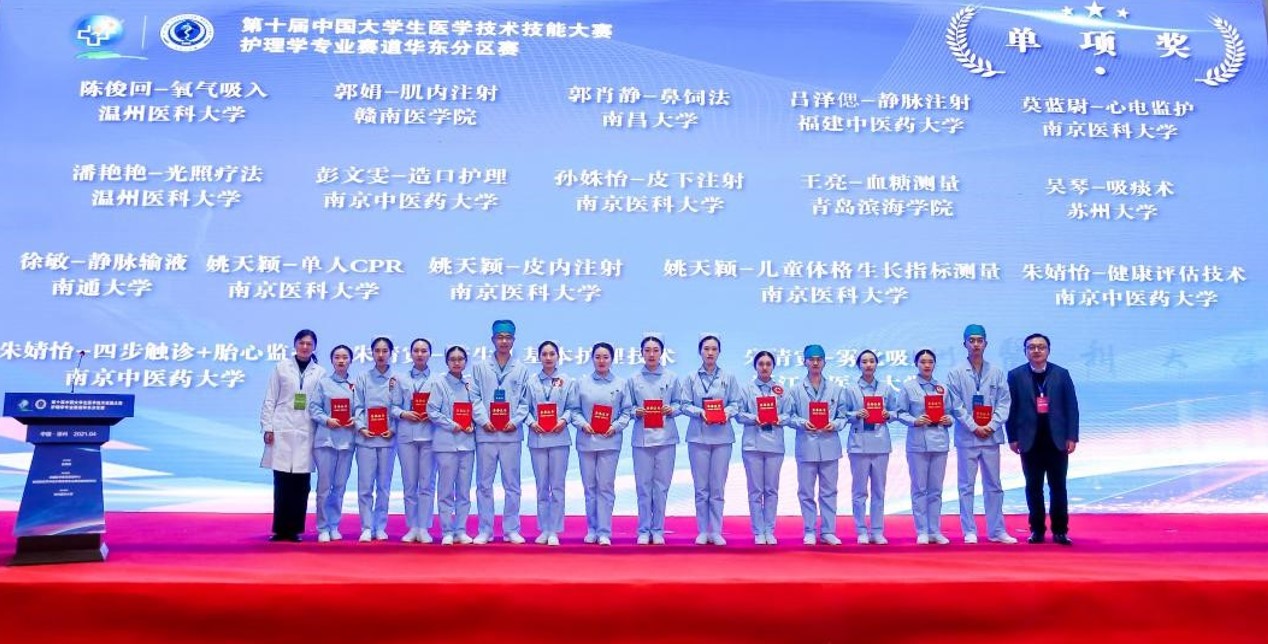 2021年4月16-18日,由教育部主办的第十届中国大学生医学技术技能大赛护理学专业赛道华东分区赛在徐州举行。本届大赛汇集了来自华东区62所院校的248位参赛选手同台竞技,经过紧张而激烈的角逐,亿博电竞官网入口代表队发挥出色,斩获团体特等奖,并荣获单项奖三项,顺利晋级全国总决赛!