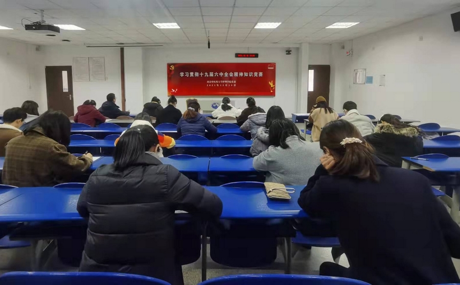 为进一步推动党史学习教育和“两在两同”建新功行动走深走实,有效促进党的十九届六中全会精神入脑入心,达到以赛促学的目的,12月15日,亿博电竞官网入口党委在B12-219教室组织开展学习党的十九届六中全会精神知识竞赛。参加竞赛对象为全体党支部书记、支部委员。