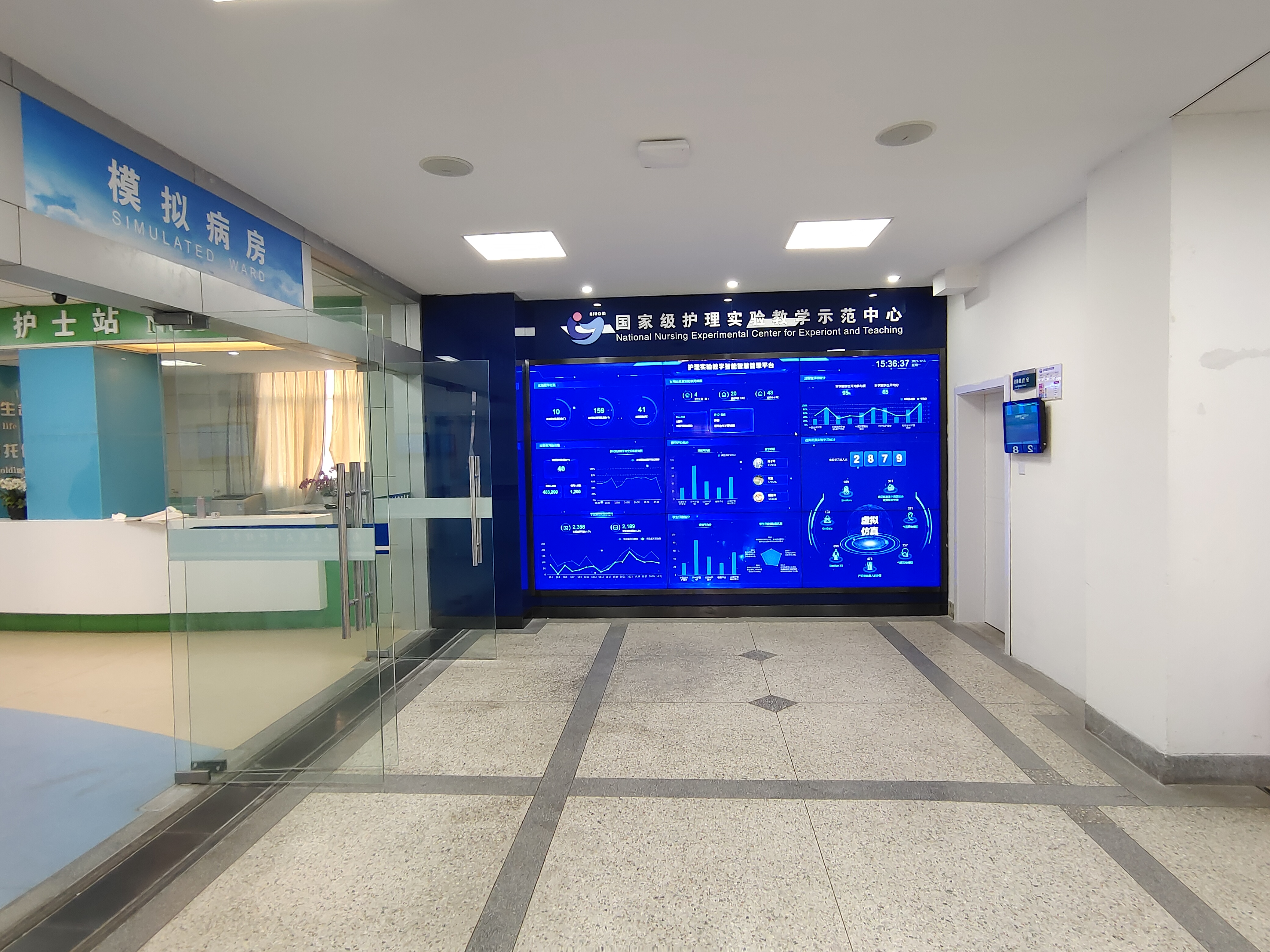全体教师参观了护理实验教学示范中心,智慧云平台呈现实验教学管理运行状态,实现师生互动、自主学习、质量评价的教学过程优化。虚拟仿真平台借助虚拟现实和人工智能技术,营造线上、线下虚实结合的护理虚拟仿真实验环境,如创伤急救、产妇分娩、火灾、地震等灾难现场,再现现实中无法模拟的场景。智能中医护理和智能养老护理特色护理实验区利用信息化、物联网、人工智能等技术,实现融生命体征监测、中医四诊、中医护理为一体的中西医智能健康管理,体现老人居家生活智能化、人性化场景。教师们在虚拟仿真实验区体验基础护理学、助产学和急救护理学等课程的信息化教学方式,在智能中医护理实验区和智能养老护理实验区中体验智能护理设备应用,真切感受护理信息化教学的专业性、趣味性。