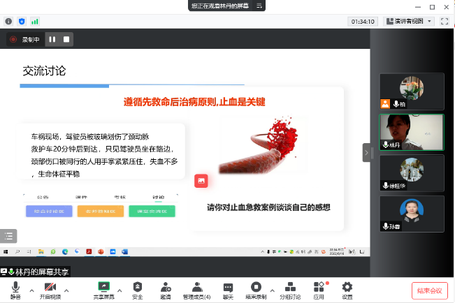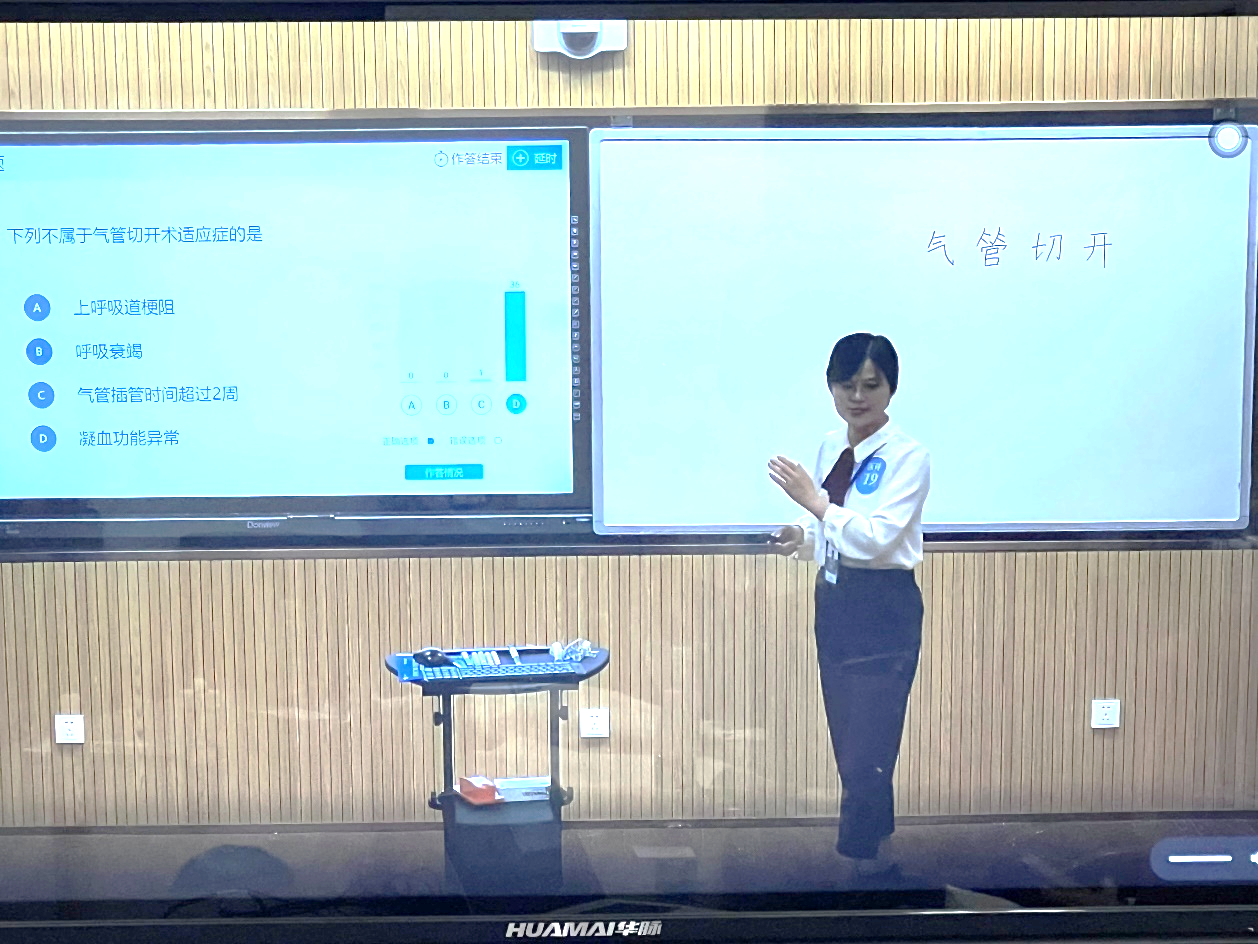 自竞赛启动以来,备赛工作得到了学校及学院的大力支持。专业负责人全程进行了精心指导,提出创新教学设计理念与策略;教务处与工会领导多次组织赛前培训,邀请专家对教学过程进行点评;学院领导协调院内多方资源统筹安排;外科护理教研室团队在孙蓉主任的带领下全体通力合作;实验中心提供了丰富的教学教具准备;通过线上、线下的形式为备赛提供全方位指导保障。参赛选手林丹老师自加压力,反复打磨教学内容,仔细推敲授课技巧,克服时间紧、任务重的困难,精心准备,全力拼搏。竞赛中林丹老师讲授了《气管切开患者的护理》,以扎实的理论功底、大方的教态仪容、精湛的教学技艺,展现了亿博电竞官网入口青年教师积极向上的精神风貌,赢得评委专家的一致认可。