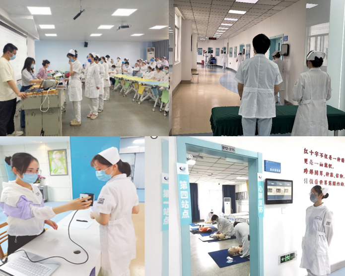 考试采用护理客观结构化临床考试(OSCE)模式,为适合不同的考试情景、考点数量、考试时长,护理实验中心对OSCE信息化系统持续研发,满足不同考核目标、考核内容、考核形式的需求。本次考核采用了多站点、多任务、多时长考核模式,学院考前在案例设计、评分标准制定、站点规划、物品准备、师资培训、考生考前培训等方面进行精心安排,考试现场通过人机交互,考试过程安静、有序、智能、高效。