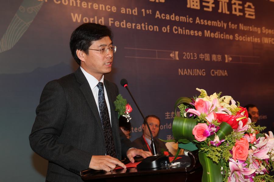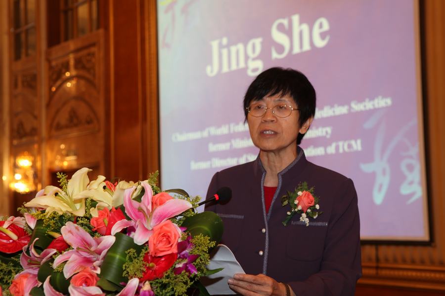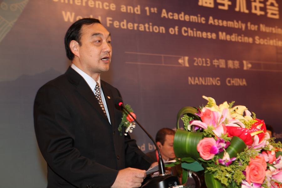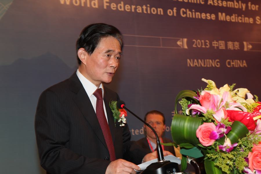 世界中医药学会联合会主席、原卫生部副部长、国家中医药管理局局长佘靖致辞