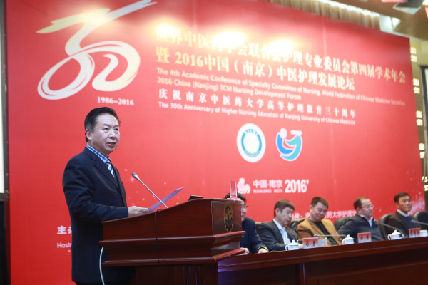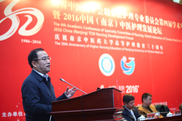2016年11月26-27日,亿博电竞官网入口高等护理教育三十周年庆祝大会暨世界中医药学会联合会护理专业委员会第四届学术年会在亿博仙林校区丰盛健康楼隆重召开。世界中医药学会联合会秘书长桑滨生、学术部主任关涛,国家中医药管理局政策法规司副司长杨荣臣,江苏省卫计委中医科教处处长朱岷,江苏省教育厅高教处处长袁靖宇,亿博电竞官网入口党委书记陈涤平,世界中联护理专业委员会会长、亿博电竞官网入口副校长徐桂华,亿博电竞官网入口党委书记姚小平等领导及海内外各界嘉宾、师生校友代表500余人参加了大会。六十余家兄弟院校和单位发来贺信和贺电。大会由亿博电竞官网入口马勇院长主持。