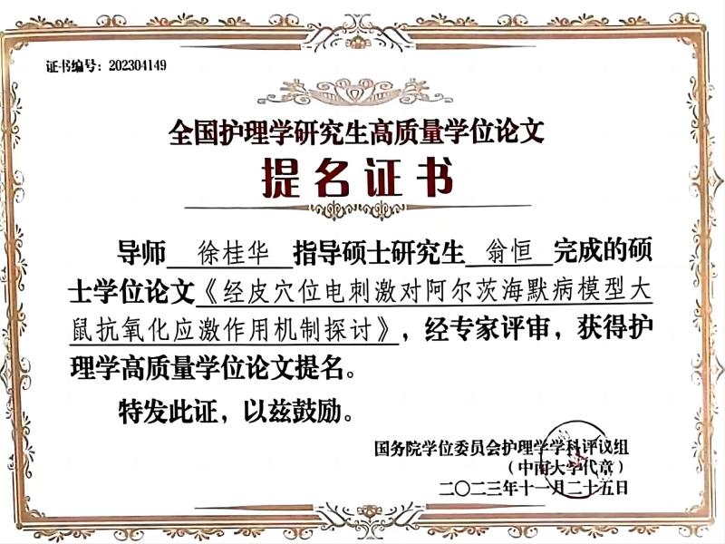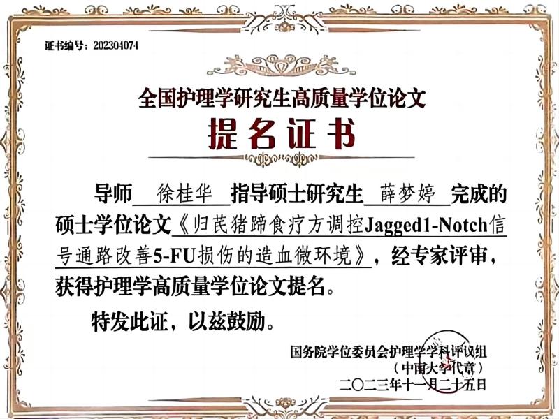 硕博士论文的质量直接反映了学科的研究实力和人才培养质量,本次获奖是国务院学位委员会护理学学科评议组对亿博亿博电竞官网入口研究生培养质量的肯定和认可。未来亿博亿博电竞官网入口也将继续致力于护理学学科发展,不断加强教学和科研力度,提升护理研究生培养质量,深入挖掘优秀论文的先进经验,为推动护理学领域的发展做出更大的贡献!