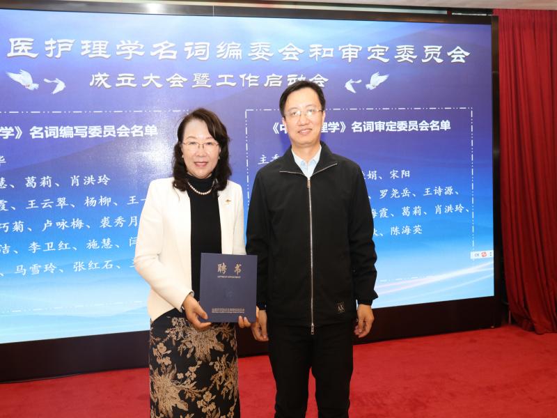 启动仪式上,张晖副主任、姜安丽主任委员和徐桂华主编为全国护理名词委中医护理学分委会编写委员会及审定委员会成员现场颁发聘书并合影留念。