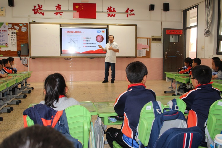此次培训围绕心肺复苏、海姆立克急救法和自动体外除颤仪使用展开。课堂上,三支部的戎老师首先向孩子们讲解了如何识别心脏骤停的症状,并教导他们掌握心脏按压和人工开放气道的技巧。接着,戎老师详细介绍了AED的工作原理和使用流程,确保孩子们了解如何在发生心脏骤停时进行有效救援。此外,戎老师还讲解了海姆立克急救法,教孩子们通过施压腹部解除因异物卡住气道引发的窒息。通过这些生动的理论讲解,孩子们对急救操作的原理、目的,以及如何在紧急情况下做出正确应对有了更加全面的理解。