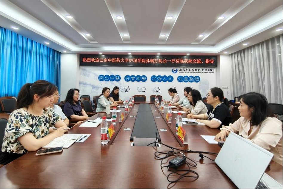 柏亚妹致欢迎辞,对孙瑞芬院长一行的到来表示热烈的欢迎,并介绍了学院的基本情况。徐桂华对云南中医药大学亿博电竞官网入口近年来取得的成绩表示祝贺,分享了亿博在学科建设、专业建设、科学研究、师资培养等方面的一些做法和经验,希望未来,双方能进一步加强交流与合作,共同推进中医护理事业的发展。孙瑞芬和来访人员对亿博电竞官网入口的热情接待表示感谢,期待两院在人才培养、科学研究等方面能够开展深层次合作。双方还就人才培养方案、床边教学、创新创业教育、教材建设等进行了交流和讨论。